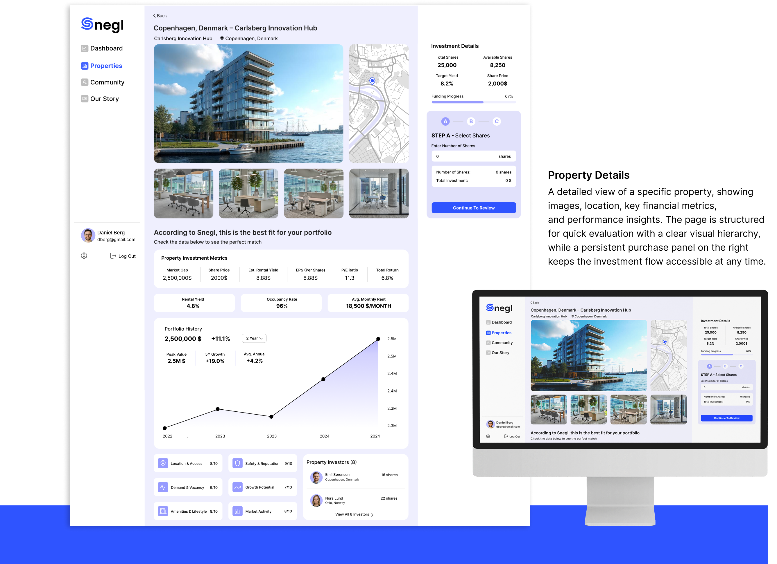 Focusing on simplicity, consistency, and visual clarity made the complex world of real-estate investments easier for users to understand.