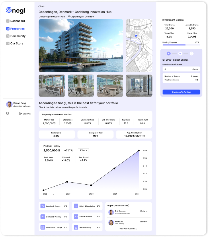 Real estate investing often feels exclusive and complex. Snegl bridges that gap by making property investment simple, digital, and accessible to everyone.